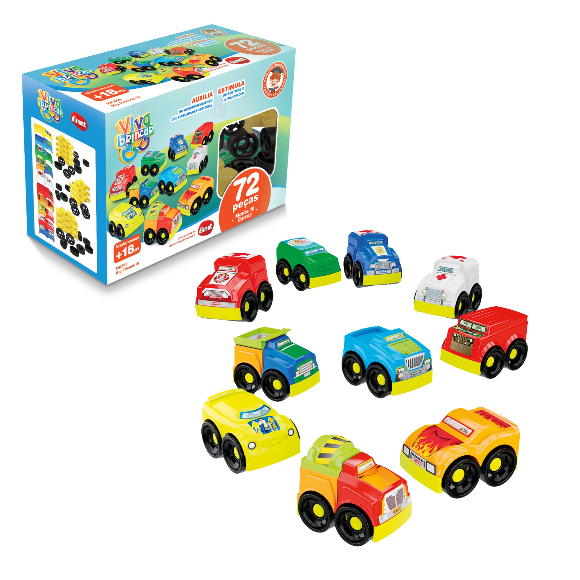 🏎️ Big Friends III Veículos de Montar 72 Peças Monta 10 Carros - Dismat | Liguem os Motores da Imaginação! 🏎️