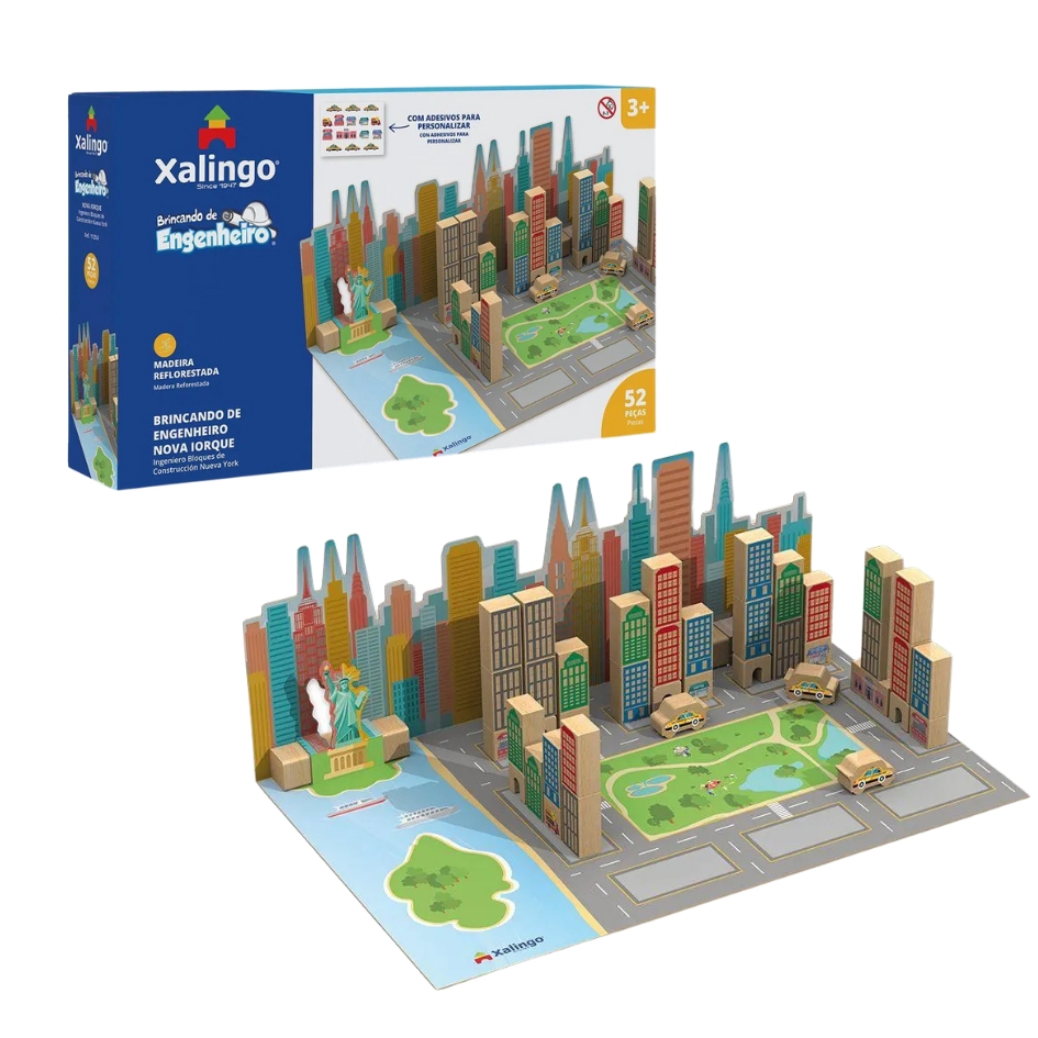 O Brincando de Engenheiro Nova Iorque 52 Peças Blocos de Montar de Madeira - Xalingo é um investimento no desenvolvimento integral da criança: