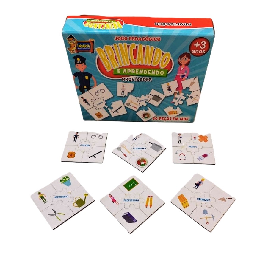 Prepare-se para abrir as portas do futuro com o Brincando e Aprendendo Profissões - Uriarte! Este jogo educativo é perfeito para introduzir as crianças ao fascinante mundo das profissões, promovendo habilidades essenciais de raciocínio lógico e associação de ideias.
