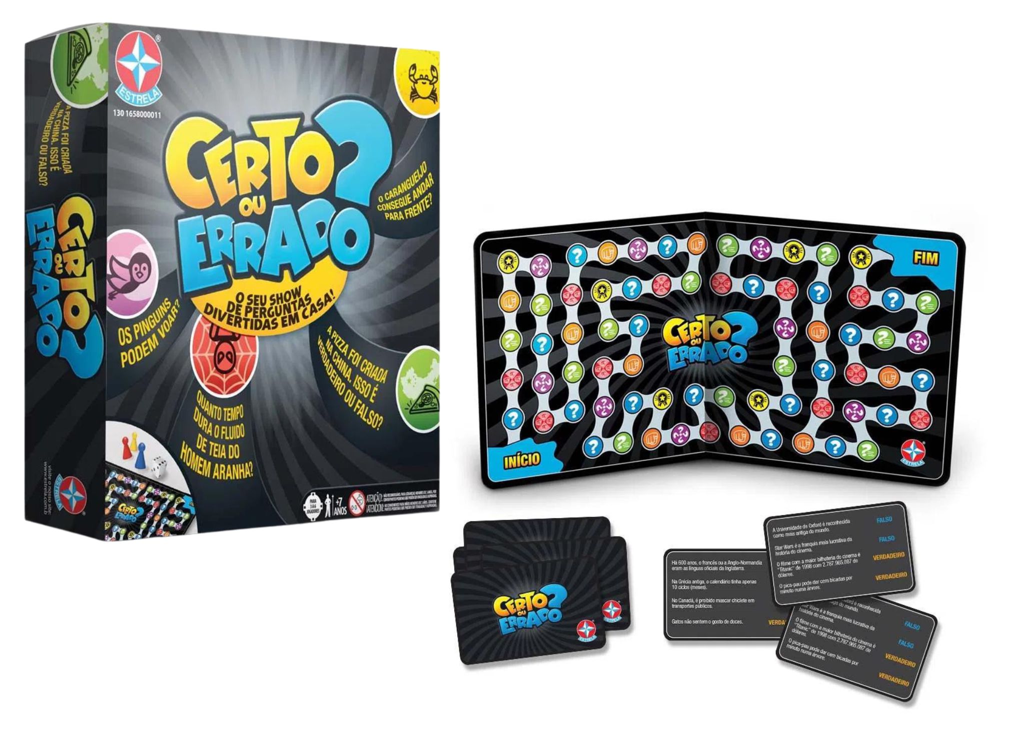 Você sabia que o Muro de Berlim tinha 4m de altura? E que as girafas não têm cordas vocais? Descubra o que é verdadeiro ou falso nesta versão de tabuleiro do divertido Jogo Certo ou Errado - Estrela! 🌐