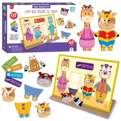 O Jogo Magnético Com Que Roupa Eu Vou 5 Temas Diferentes e 65 Peças Magnéticas - Nig vem completo para a diversão e o aprendizado começar: