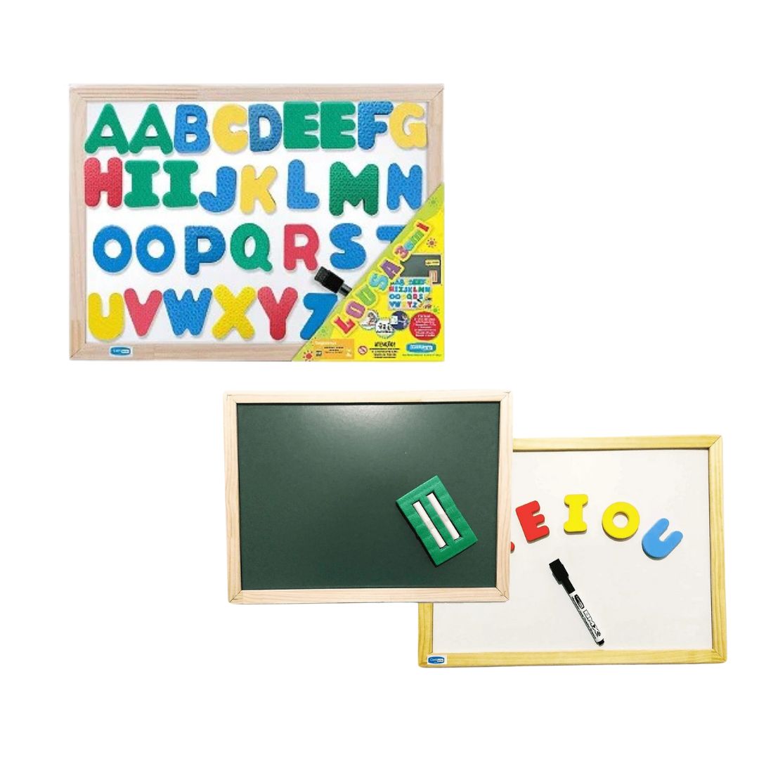 A Lousa 3 em 1 ABC Dupla Face Magnético Quadro Branco Quadro Verde 40 x 30 - EvamaxLousa 3 em 1 ABC Dupla Face Magnético Quadro Branco Quadro Verde 40 x 30 - Evamax é perfeita para crianças que estão em fase de aprendizado, oferecendo um ambiente lúdico e criativo para desenvolver a coordenação motora, percepção visual e criatividade. Com um lado quadro verde para escrita com giz e outro lado quadro branco magnético, essa lousa versátil proporciona uma experiência educativa completa. Além disso, as letras magnéticas ajudam as crianças a formar palavras, tornando o aprendizado do alfabeto ainda mais divertido!