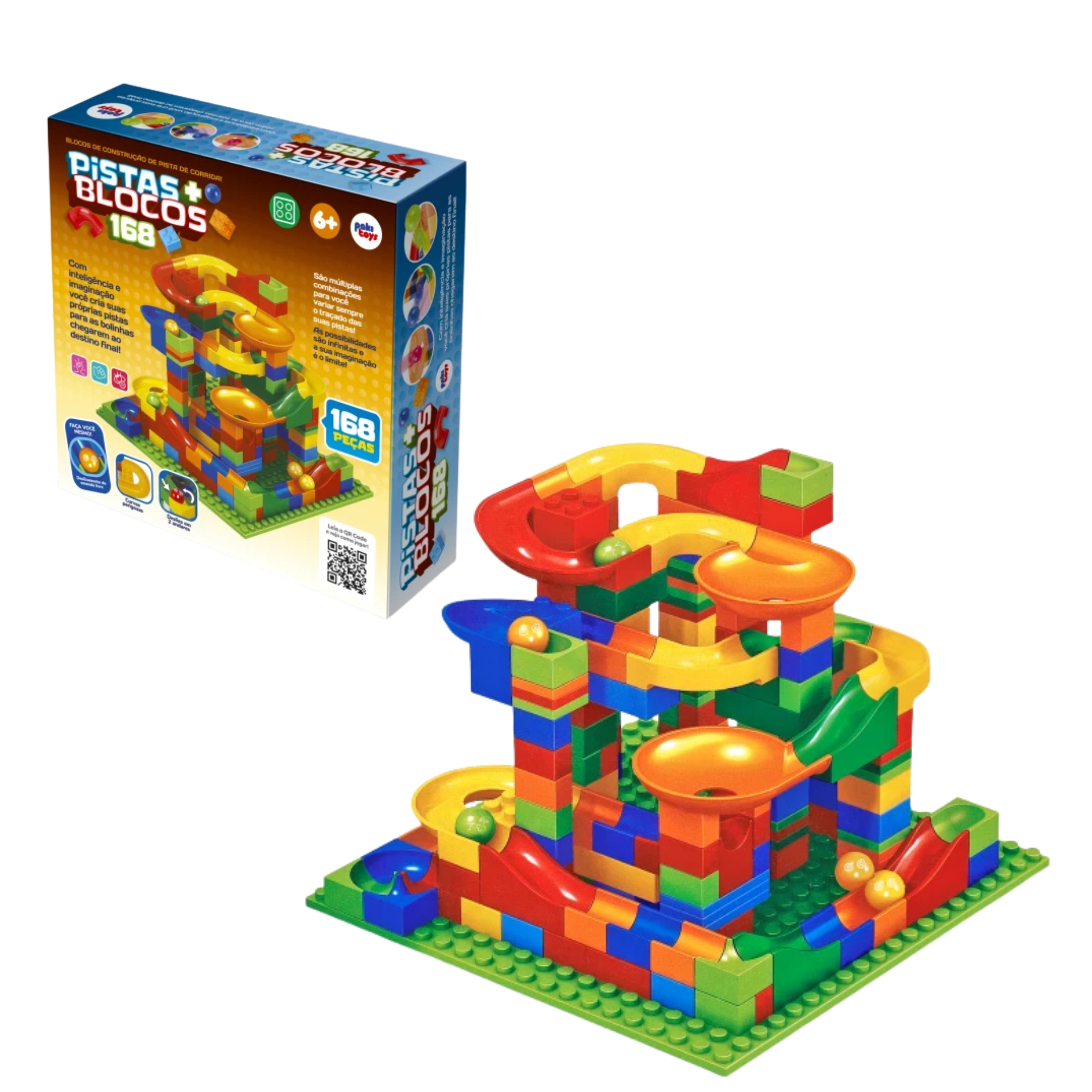 Transforme qualquer momento em uma verdadeira aventura com o Pistas e Blocos - Blocos de Construção de Pista de Corrida 168 Peças - Pakitoys! 🏁