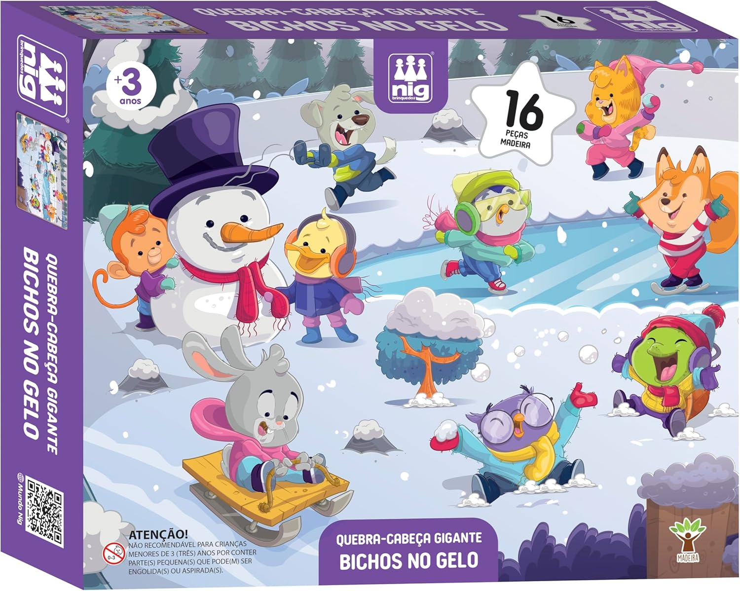 ❄️ Quebra Cabeça Gigante Bichos no Gelo 16 Peças Madeira - Nig | Diversão Tamanho Família para Desenvolver o Raciocínio! 🐧